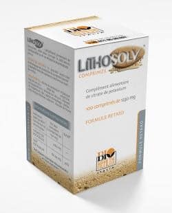 Supplément quotidien de sels alcalinisants de potassium pour aider à rétablir et à maintenir l’équilibre acido-basique systémique et urinaire. Les changements des habitudes alimentaires, liés à des régimes orientés à la consommation excessive de protéines ou de gras, peuvent modifier l'équilibre métabolique de l'organisme et porter à une excessive charge d'acide. Une telle condition peut faciliter, à sa suite, l'apparition de certaines maladies, telles que l'ostéoporose et les calculs rénaux, qui se produisent souvent grâce à une une faible présence de citrates dans les urines et par un pH acide (pH urinaire 5.0-5.5). Le maintien de telles valeurs acides urinaire peut facilement induire la précipitation de l'acide urique dans l'urine et la formation de calculs d'acide urique. Par contraste, la correction de cet état d’acidose avec des éléments alcalinisants favorise la dissolution et la solubilisation du calcul d'acide urique. Une alimentation riche en fruits et légumes est la principale source de substances qui forment des bases destinées à corriger la charge excessive d'acide. Ceci dit, l’approche diététique, seule, n’est pas toujours suffisante, mais peut exiger un complément alimentaire. Cela est particulièrement vrai chez les personnes âgées, chez les personnes qui pratiquent une activité physique intense, chez les femmes ménopausées ou bien chez ceux qui suivent des régimes très riches en protéines animales. LITHOSOLV comprimés est un complément alimentaire à base de sels alcalins de potassium qui peut corriger la charge excessive d'acide, estimée directement par la mesure du pH urinaire. Le pH urinaire peut être mesuré facilement à l’aide de bandes incluses dans l'emballage de LITHOSOLV comprimés. Le pH urinaire est une valeur qui varie au cours de la journée avec des baisses plus importantes au cours de la nuit et le matin; c’est pour cette raison qu’il est préférable effectuer la mensuration surtout au réveil. Si le pH est inférieur à 6 il faut, après acceptation du médecin, faire une correction avec LITHOSOLV comprimés le matin et le soir, ensuite vérifier l'action alcalinisante urinaire avec les bandes appropriées. En présence de calcul d'acide urique est recommandé de garder le pH urinaire entre 6.5 à 6.8 pour aider à dissoudre les cristaux d'acide urique. C'est aussi recommandé une prise d'eau quotidienne de 2,5-3 litres pour aider la dilution de l'acide urique urinaire. DOSAGE Chaque comprimé contient 1 g de citrate de potassium, qui correspond à 390 mg de Potassium (ou 10 mEq), dans une formulation qui assure une libération prolongée dans le temps. POSOLOGIE ET MODALITE’ D’EMPLOI Le dosage quotidien de Lithosolv comprimé est de 2 comprimés (sauf indication médicale) en deux prises quotidiennes fractionnées à avaler après les repas. La formulation particulière permet une libération continue des substances alcalinisantes assurant des valeurs de pH constantes pendant le long de la journée. Si le pH mesuré le matin au réveil se maintient inférieur à 6,0 il est recommandé de doubler la dose à 4 comprimés par jour, toujours divisée en deux prises. CONTRE-INDICATIONS et PRECAUTIONS LITHOSOLV comprimés sont contre-indiqués chez les patients qui souffrent d'hyperkaliémie ou dans des conditions qui peuvent prédisposer au développement de cette altération plasmatique. Dans ces conditions on retrouve la l'insuffisance rénale chronique, diabète sucré pas contrôlé. PRISE OU UTILISATION AVEC DES MéDICAMENTS Veuillez indiquer à votre médecin si vous prenez des médicaments, l’éventuelle prise de LITHOSOLV. Le concomitant apport de LITHOSOLV comprimés avec des médicaments épargneurs de potassium (triamtérène, spironolactone, spironolactone, amiloride) peut déterminer hyperkaliémie. Il est donc recommandé de surveiller le niveau de kaliémie. Il n'y a pas d'interactions connues avec d'autres médicaments. HYPERSENSIBILITE’ ET EFFETS INDÉSIRABLES LITHOSOLV COMPRIMES est généralement bien toléré. Rarement, chez les personnes sensibles, ils peuvent se développer des troubles gastro-intestinaux comme la lourdeur abdominale, les nausées et de la diarrhée occasionnelle. Boîte: Flacon de 100 comprimés à libération prolongée. UTILISATION DES BANDELETTES POUR LA MESURE DU pH Recueillir l'urine dans un récipient, retirer avec des mains sèches une bandelette pH de l’étui transparent et la tremper dans l'urine pendant une seconde. La partie humide de la bandelette verra sa couleur se modifier en fonction du pH urinaire. Dans un délais de deux minutes comparer la couleur de la bandelette avec l'échelle de couleurs de référence et lire la valeur correspondante à la couleur qui se rapproche le plus à celle de la bandelette. Après utilisation les bandelettes doivent être jetées dans le bac des déchets ménagers non recyclables. Remarque: une possible modification de couleur des bandelettes qui ne sont pas encore utilisées ne compromet pas leur précision.