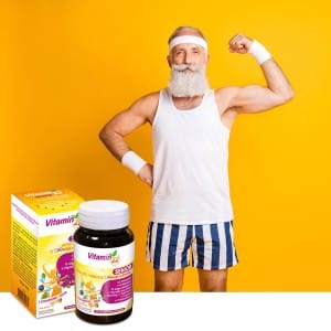VITAMIN’22 SENIOR est un complément alimentaire associant 12 vitamines, 6 minéraux et oligo-éléments, Extraits de Plantes (Myrtille, Echinacée, Ginseng), Lutéine, Propolis et probiotiques pour le tonus, la vitalité et les défenses naturelles des seniors, dès 50 ans.